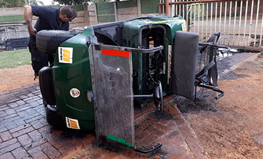 Hannes provides customers with a call out service and does most repairs on site. If the damage is too severe, he may need to pick up the carts and repair them at his workshop, but he delivers the carts back to the clients as quickly as possible, depending on the availability of the parts.